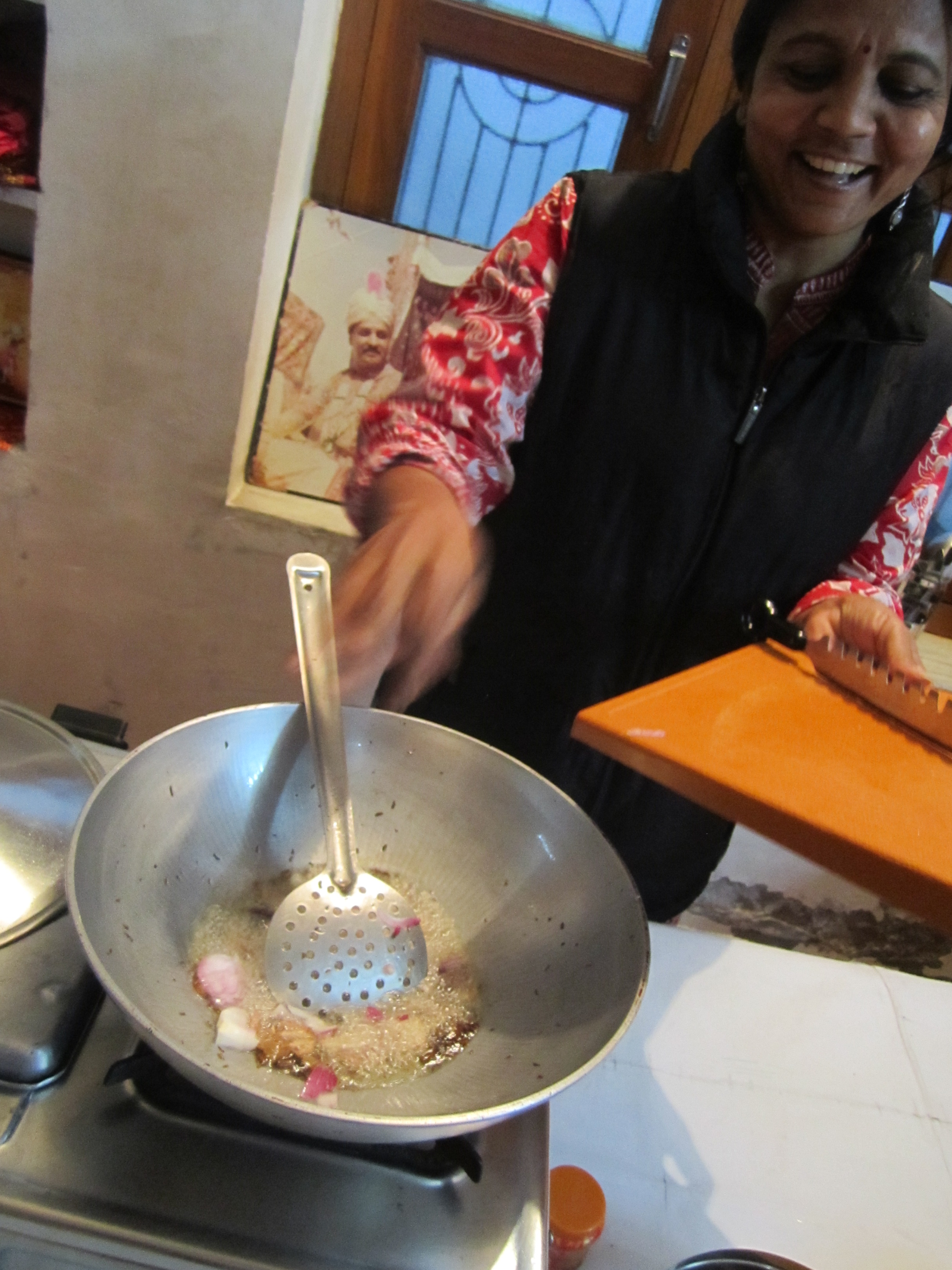 On our next to last eve in India, we were lucky enough to share a kitchen with Shivani. I was a little reluctant after realizing she was the wife of one particular shop owner. This guy had sent me on a mission for small bills, then upped his price and refused to bargain as soon as I was cash in hand. Regardless, she was the only cooking class in town and had many rave reviews.